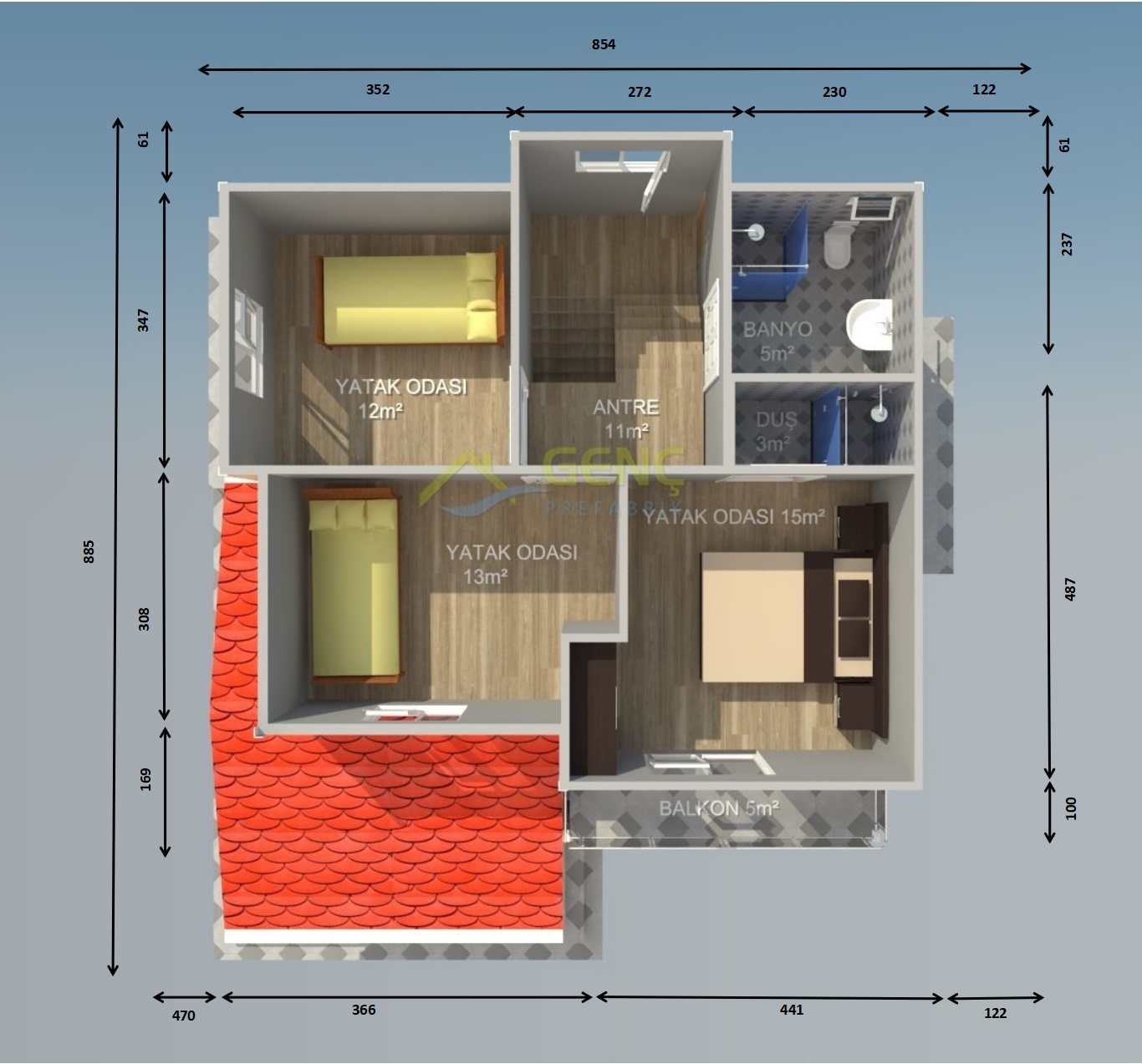 - Prefabrik yapı duvarları, birleşim elemanları, çatı makasları, çatı ve tavan kaplama malezemeleri, izolasyon malzemeleri, iç ve dış boya malzemeleri, birleşim detaylarına mastik çekilmesi ve iç dış boya işlemlerinin yapılması,