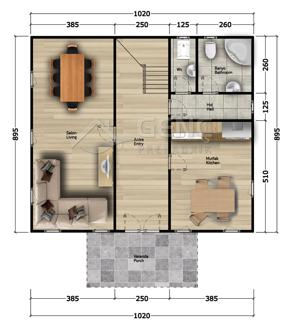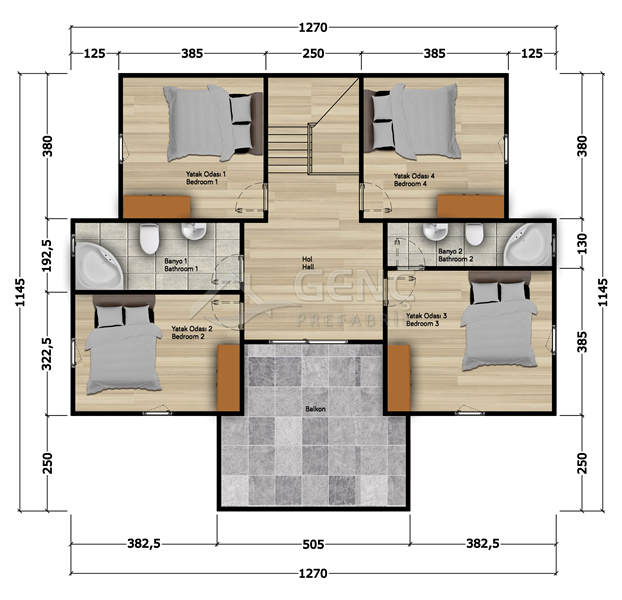 - Prefabrik yapı duvarları, birleşim elemanları, çatı makasları, çatı ve tavan kaplama malezemeleri, izolasyon malzemeleri, iç ve dış boya malzemeleri, birleşim detaylarına mastik çekilmesi ve iç dış boya işlemlerinin yapılması,