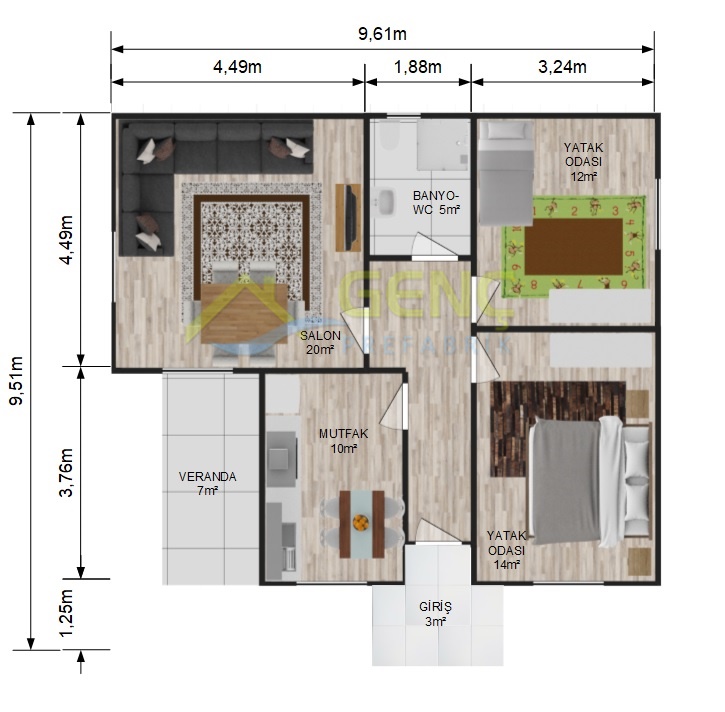 - Prefabrik yapı duvarları, birleşim elemanları, çatı makasları, çatı ve tavan kaplama malezemeleri, izolasyon malzemeleri, iç ve dış boya malzemeleri, birleşim detaylarına mastik çekilmesi ve iç dış boya işlemlerinin yapılması,