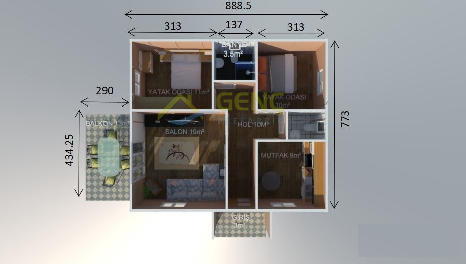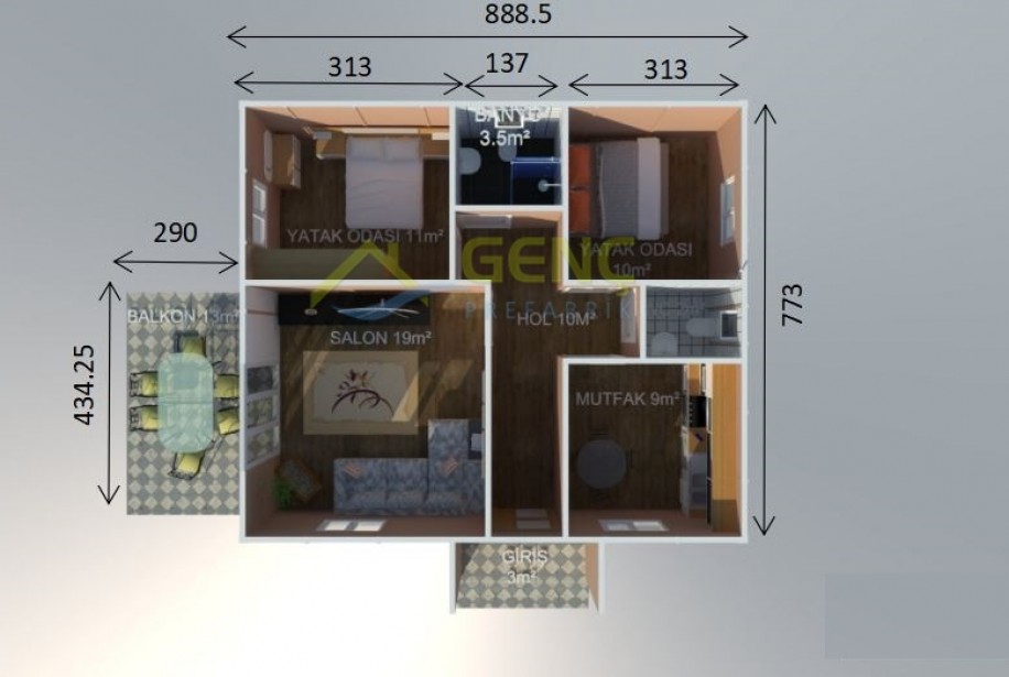 - Prefabrik yapı duvarları, birleşim elemanları, çatı makasları, çatı ve tavan kaplama malezemeleri, izolasyon malzemeleri, iç ve dış boya malzemeleri, birleşim detaylarına mastik çekilmesi ve iç dış boya işlemlerinin yapılması,